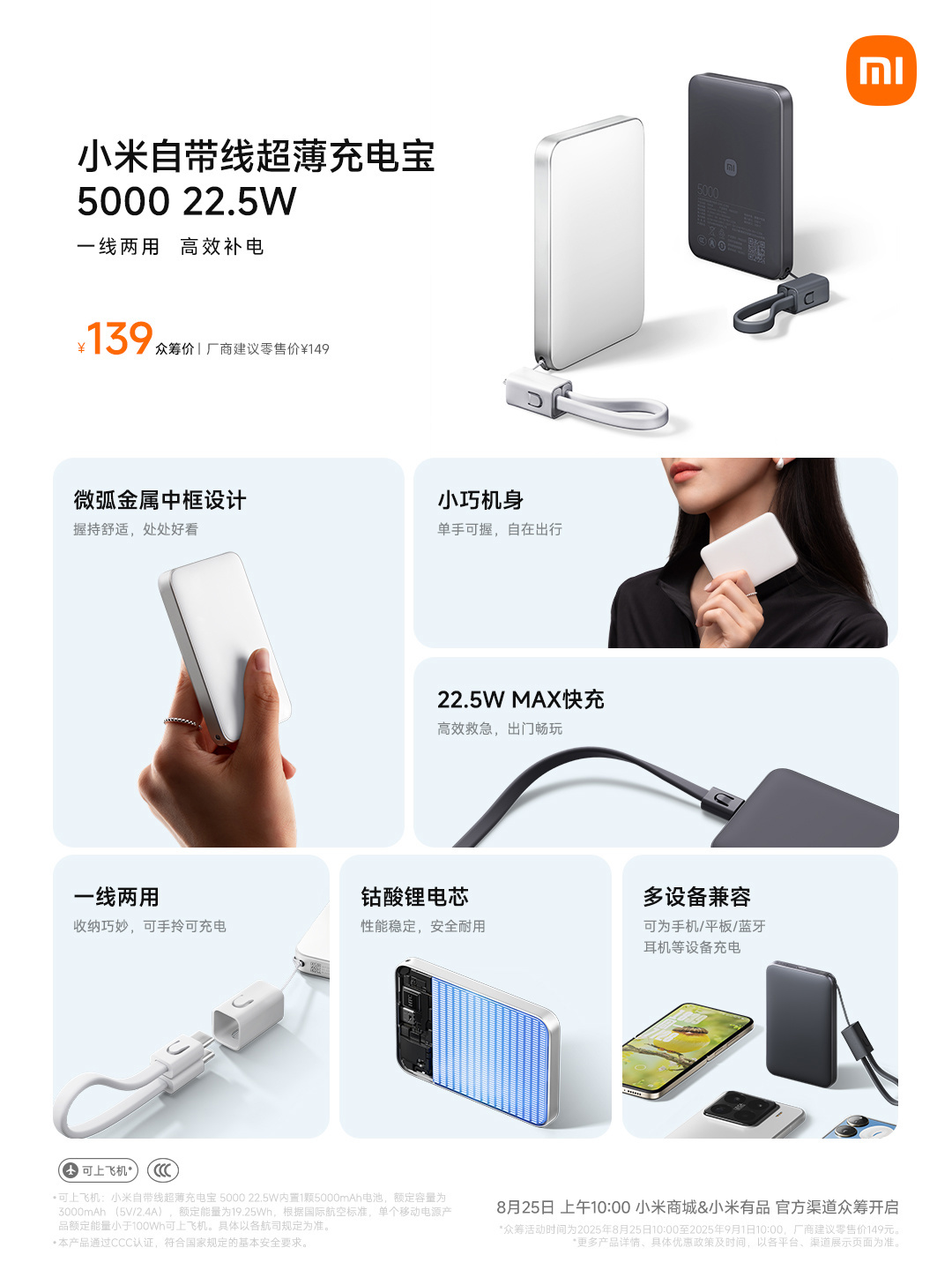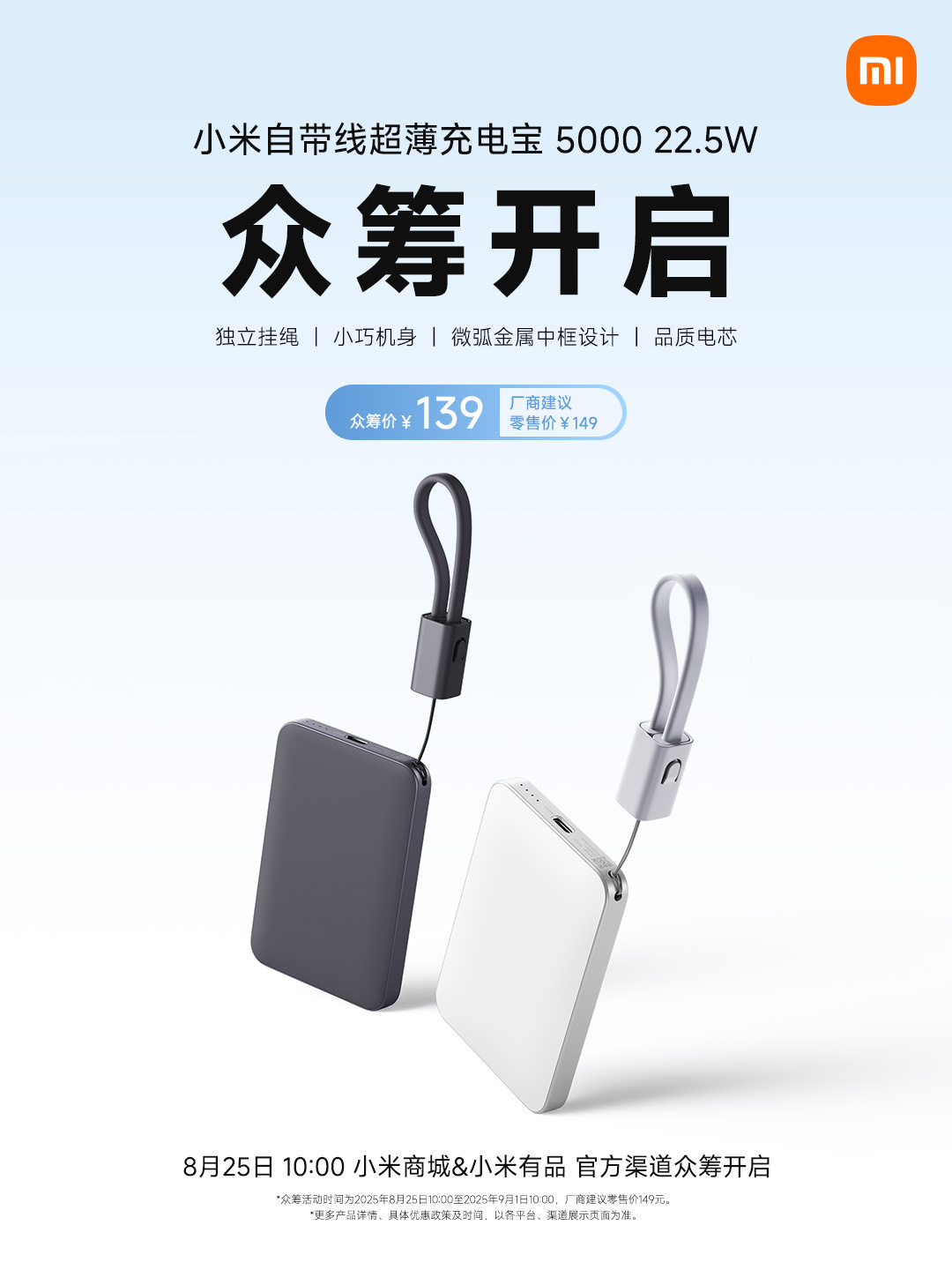 小米超薄充电宝5000mAh上市:22.5W快充,众筹价仅需139元